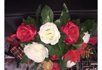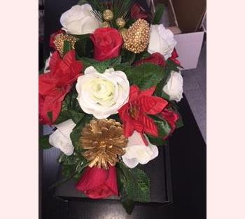 Beautiful Christmas memorial in artificial flowers, any colour is available dressed with Christmas pick