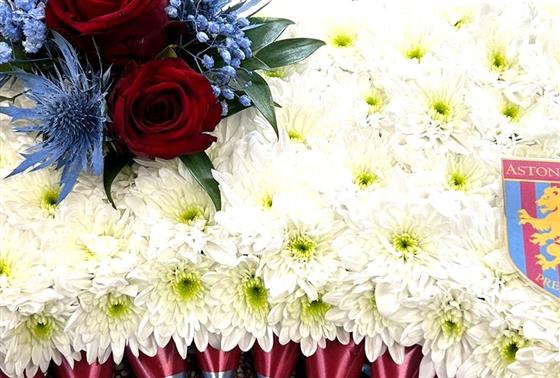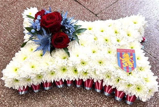 A special tribute for an Aston Villa fan, a based pillow trimmed in Aston Villa colours and a Aston Villa badge, size shown is 18" x 14", other sizes are available